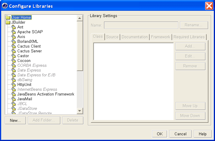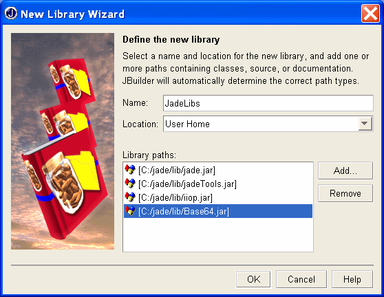 Click OK. And on the previous window, also click OK. Now JBuilder knows about JADE. However, you still have to tell your projects about JADE.
